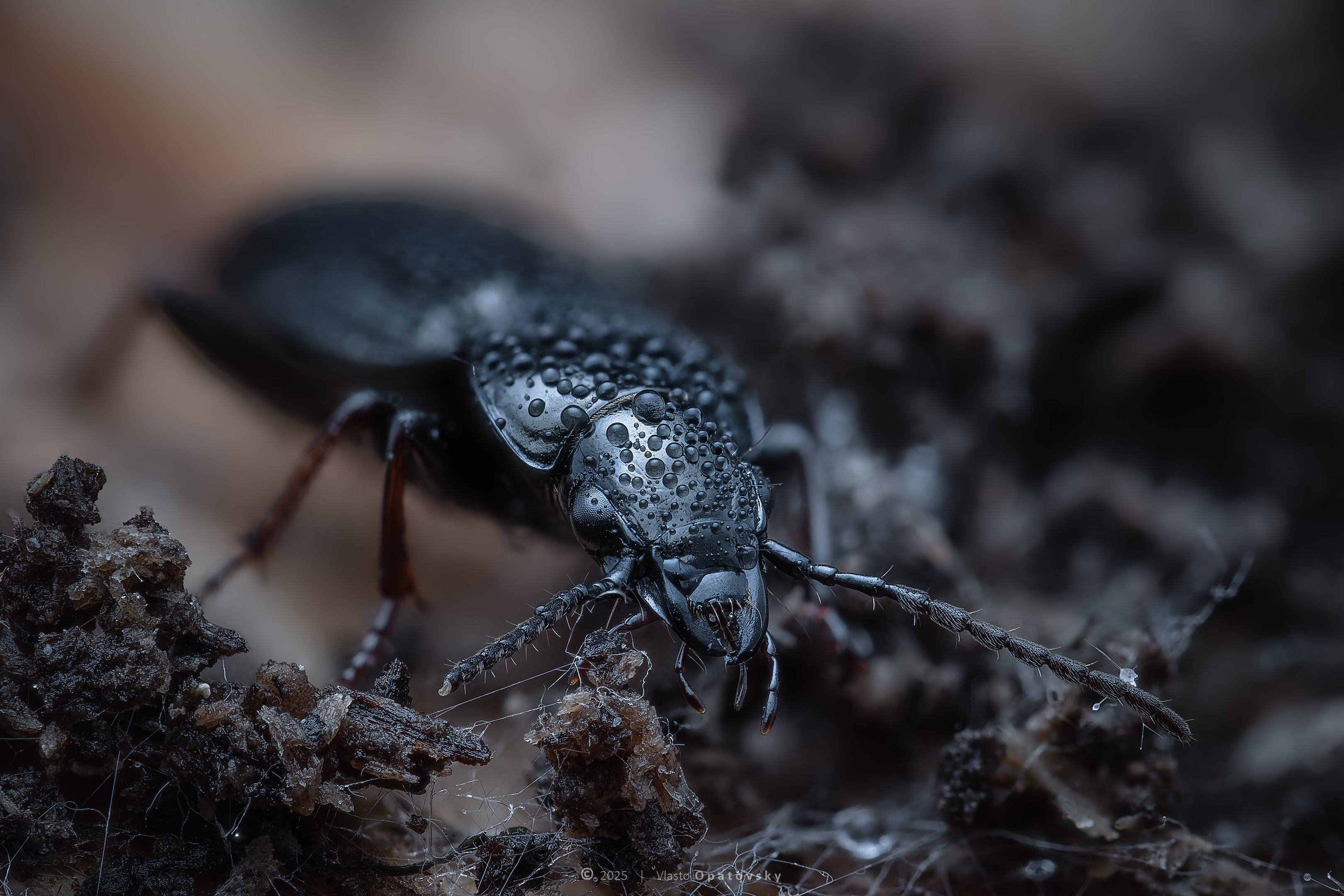 Bystruška medená (Carabus cancellatus), 23.4.2025, OM-1 OLYMPUS M.60mm F2.8 Macro, 1-50s, f 1-4.5, ISO-640, bystruska medena, id-1413