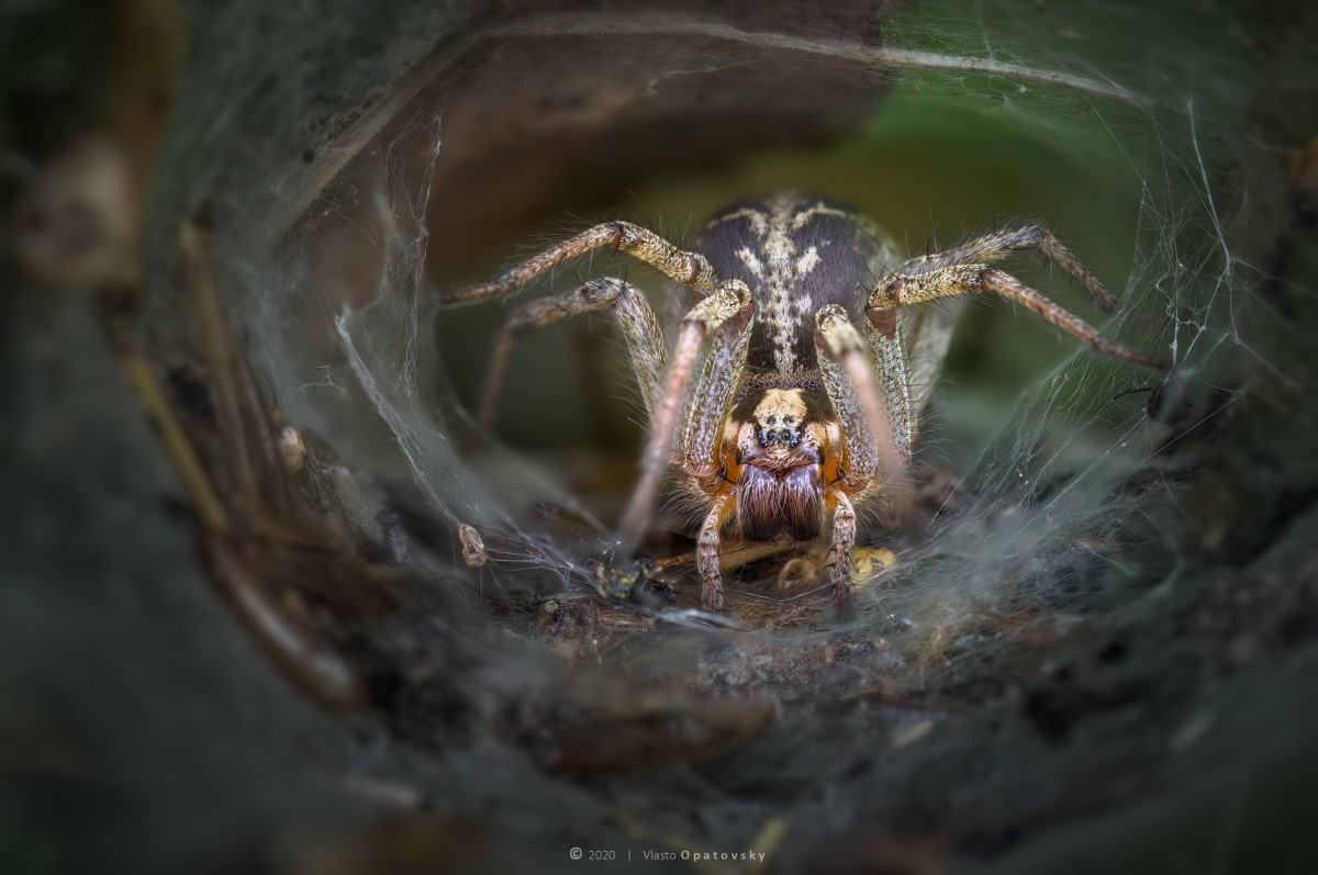 Strehun (Arctosa cinerea), 17.8.2024, E-M1MarkII OM 90mm F3.5, 1-50s, f 1-7.1, ISO-200, strehun Arctosa cinerea, id-1274