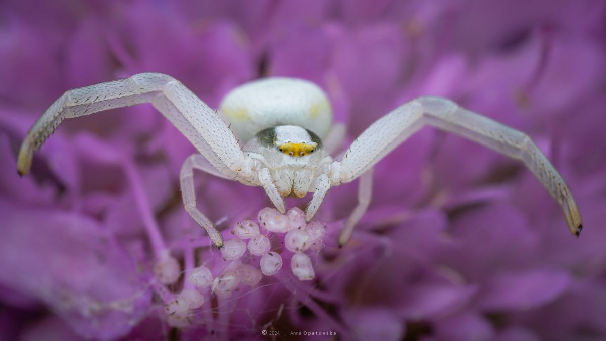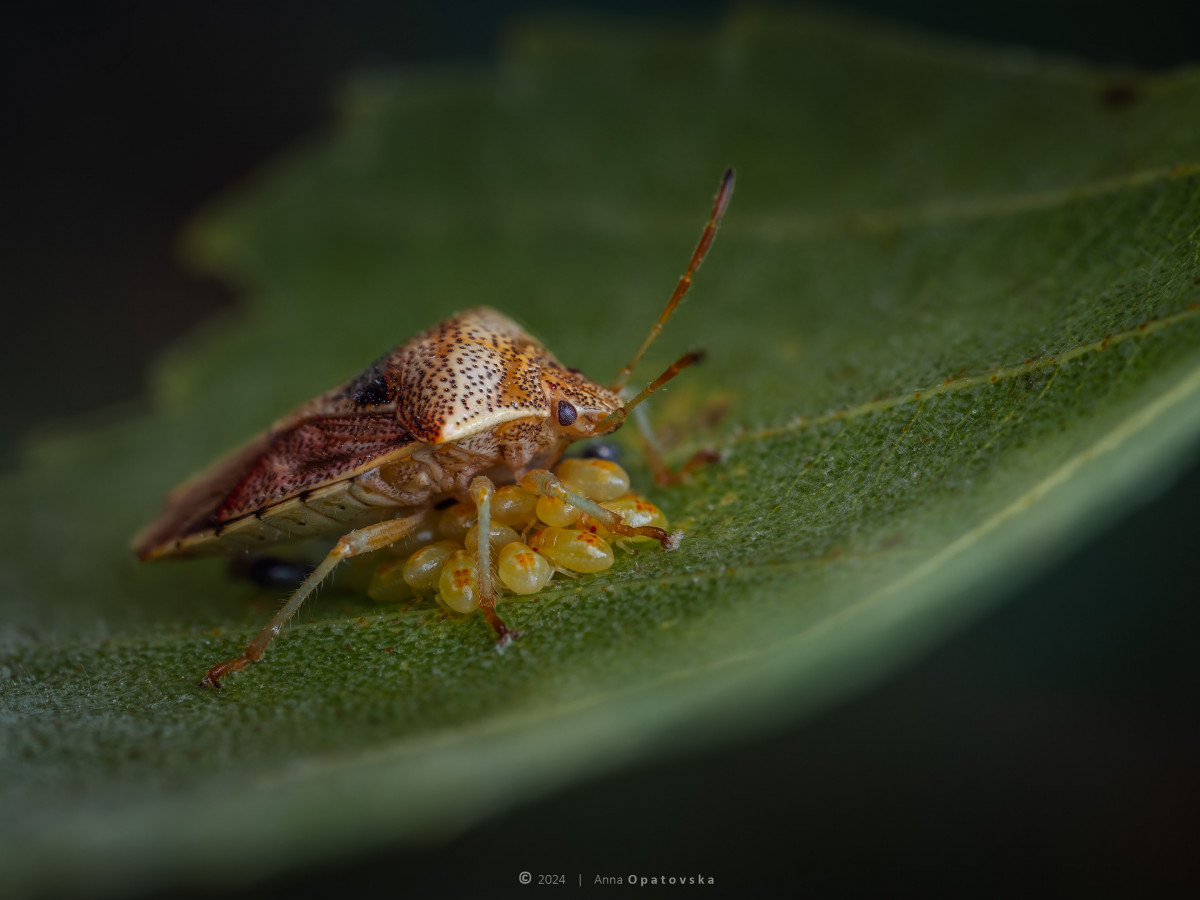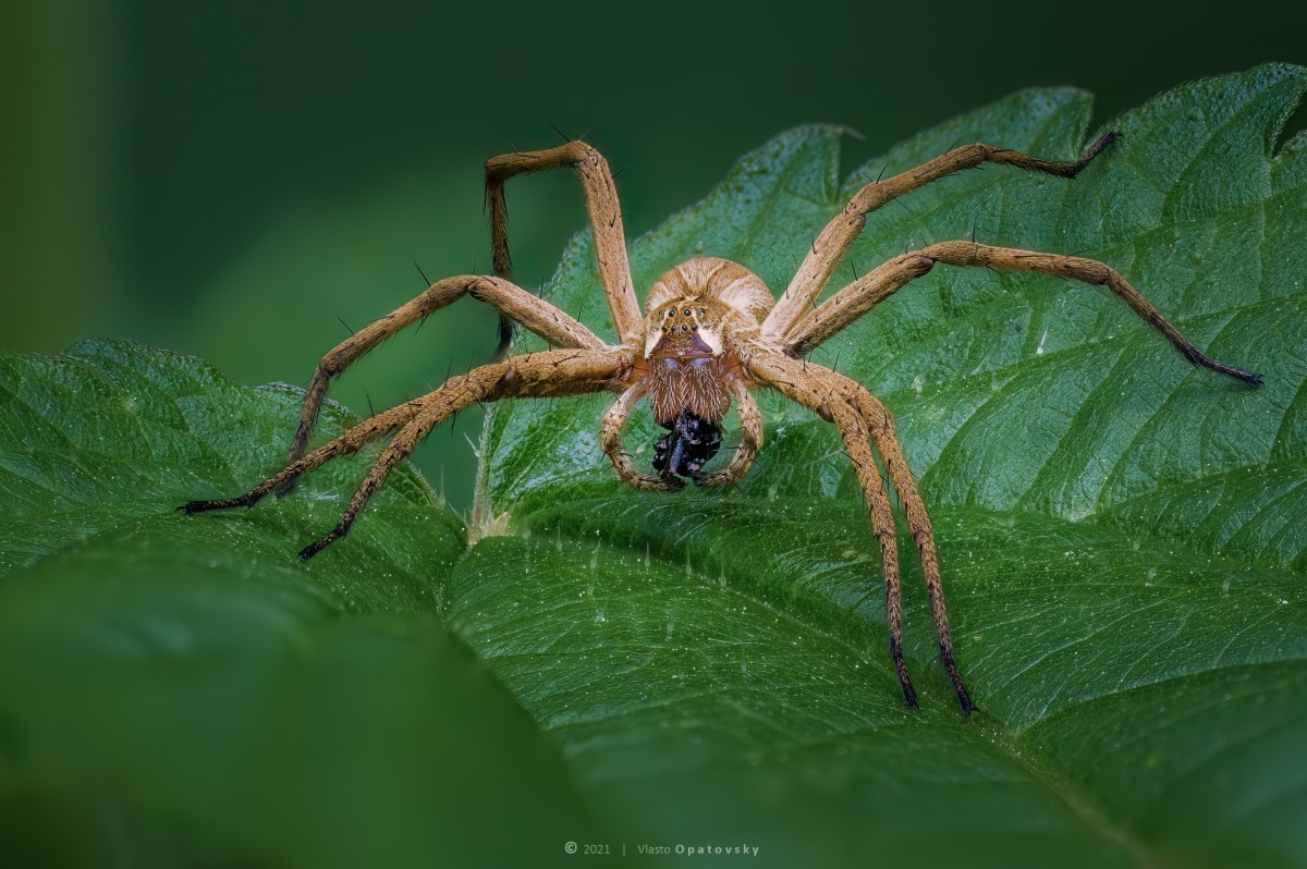 Pradiarka bodkovaná (Enoplognatha ovata), 10.7.2024, E-M1MarkII OM 90mm F3.5, 1-50s, f 1-8, ISO-640, pradiarka bodkovana, id-1236