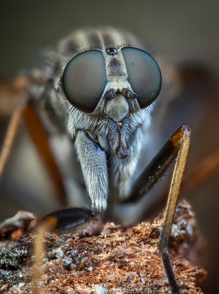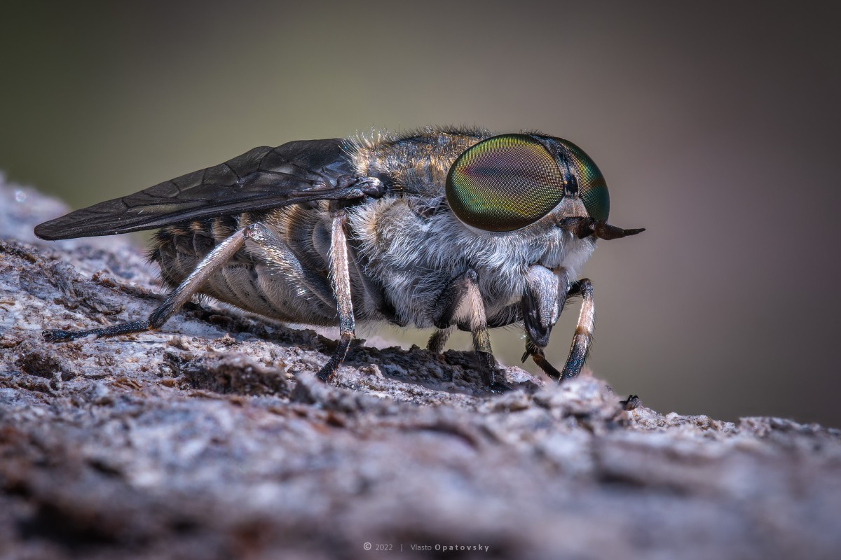 Muchárka (Dioctria linearis), 3.7.2024, E-M1MarkII OM 90mm F3.5, 1-250s, f 1-14, ISO-640, mucharka Dioctria linearis, id-1232