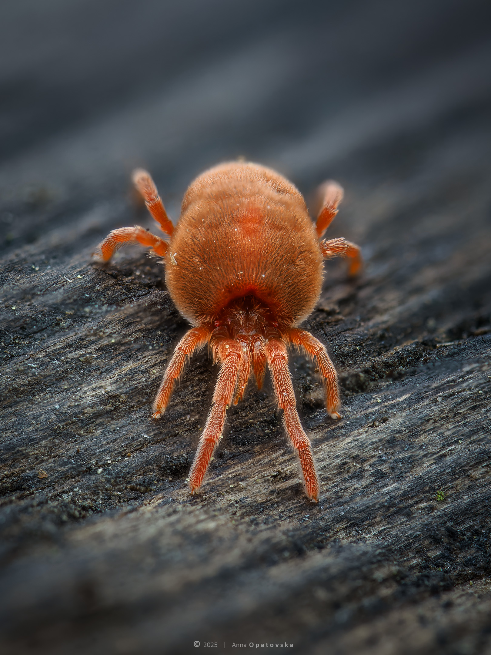 Roztočík červený (Trombidium holosericeum), 7.3.2025, E-M1MarkII OM 90mm F3.5, 1-50s, f 1-7.1, ISO-640, roztocnik cerveny, id-1393
