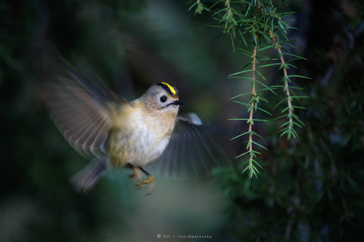 Králik zlatohlavý (Regulus regulus), 1.11.2024, OM-1 OLYMPUS M.150-400mm F4.5, 1-160s, f 1-4.5, ISO-1250, kralik zlatohlavy, id-1337