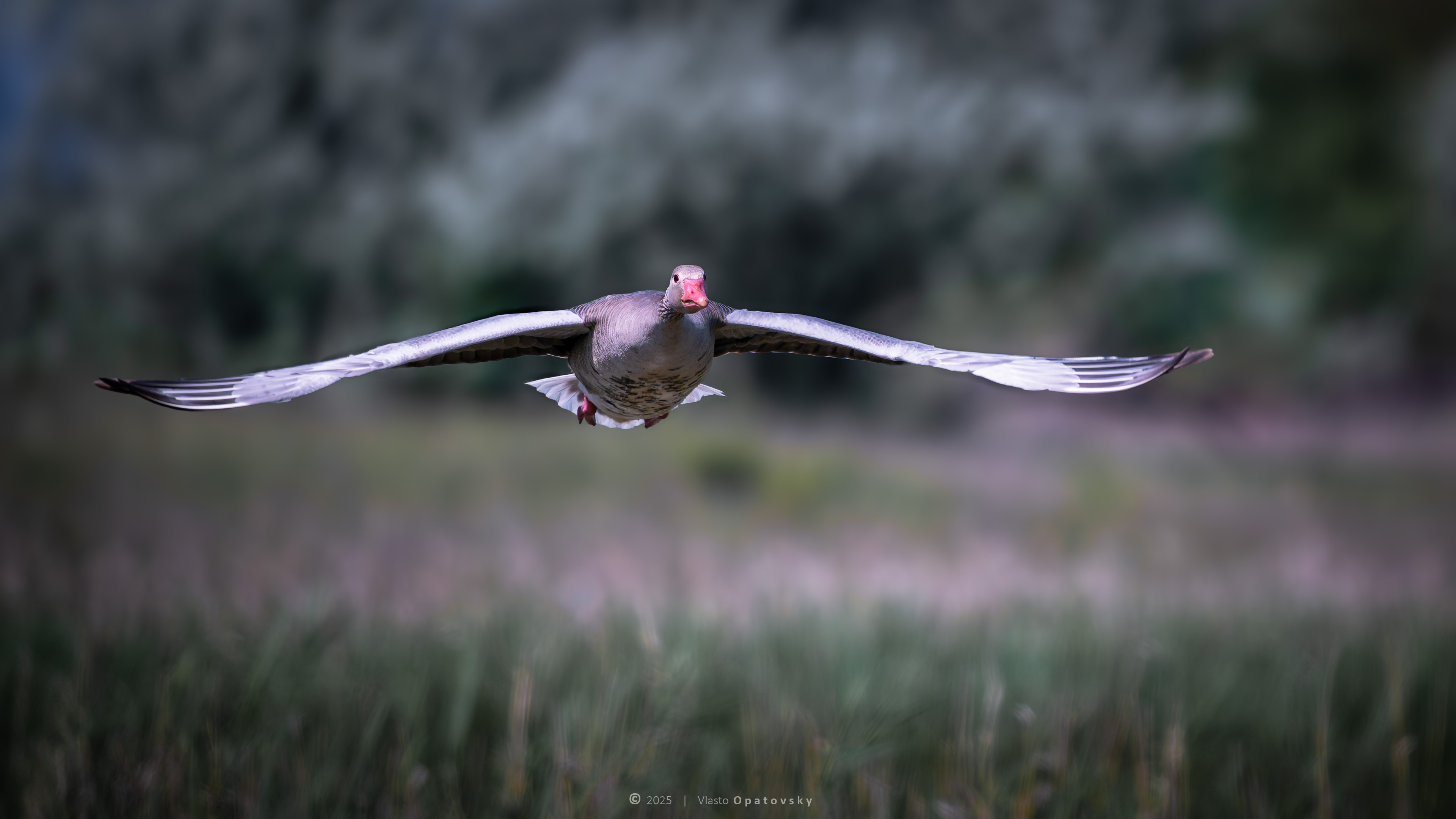 Hus divá (Anser anser), 28.4.2025, OM-1 OM 150-400mm F4.5 TC, 1-3200s, f 1-5.6, ISO-400, hus diva, id-1430